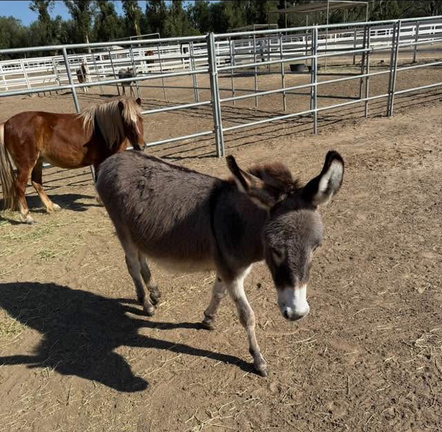 Say hello to Stella! Once crammed into a crowded trailer and facing an uncertain future, this brave little donkey is now living her best life at the Southern California Equestrian Center. Instead of fear, Stella now gets sunshine, treats, and lots of ear scratches—all thanks to the efforts of people who care.